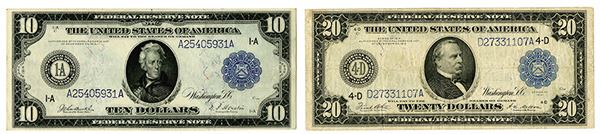 Washington, Lot of 2 notes, Includes $10, Choice VF and $20, VF to Choice VF notes.