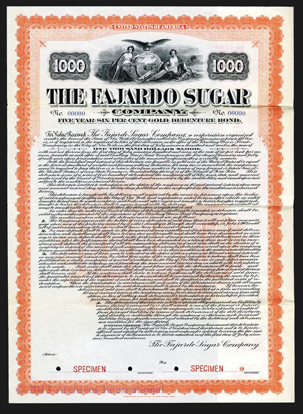New York. $1000 Gold Coupon Bond Specimen. ABNC NY Litho. POCs. VF+