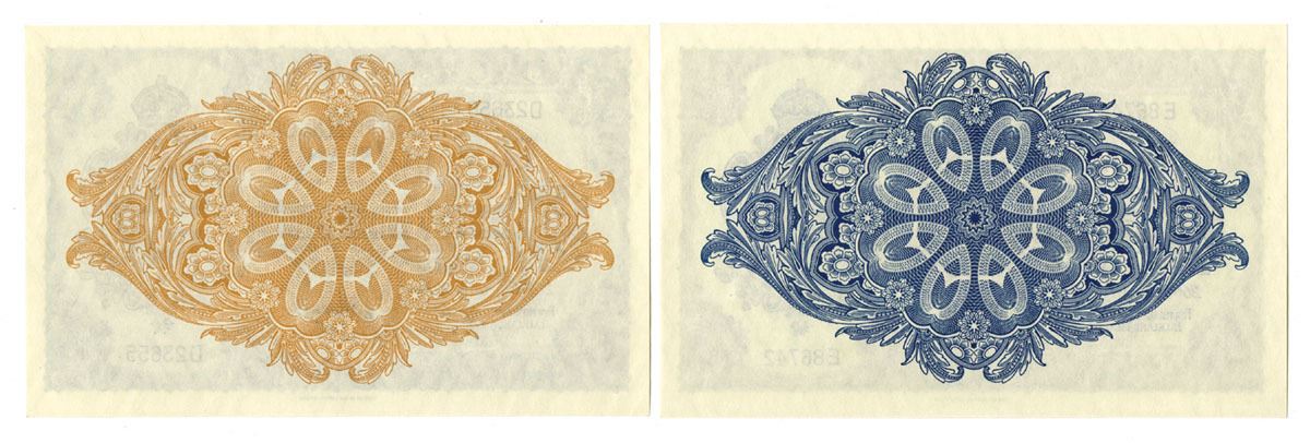 Falkland Islands...., 1974. Lot of 2 Issued Banknotes, Includes: 1 Pound, P-8b, Blue on gray-green and lilac underprint with portrait of Queen Elizabeth II at right; 50 Pence, P-10b, Brown on gray underprint with portrait of Queen Elizabeth II at right. Notes are in Choice AU to Uncirculated condition. TDLR. (2). Sold "AS IS" no returns accepted.