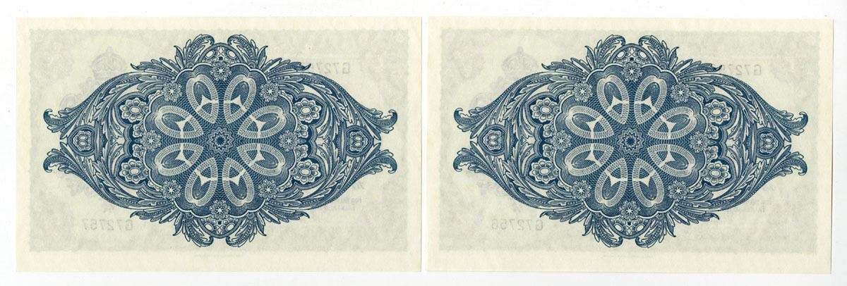 Falkland Islands....., 1982. 1 Pound, P-8e (2), Sequential Pair of Issued Banknotes, Blue on gray-green and lilac underprint with portrait of Queen Elizabeth II at right, Back blue with kaleidoscopic pattern at center, S/Ns G72756 & G72757, Notes are in Choice AU to Uncirculated condition. TDLR. (2). Sold "AS IS" no returns accepted.