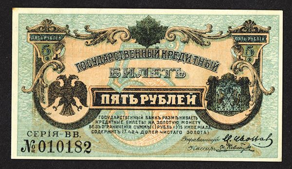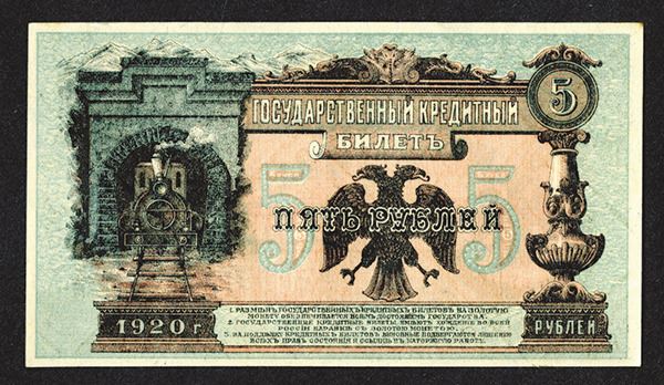 Russia (East Siberia), issued 5 Rubles, 1920, P-S1246, About Uncirculated to Uncirculated condition.