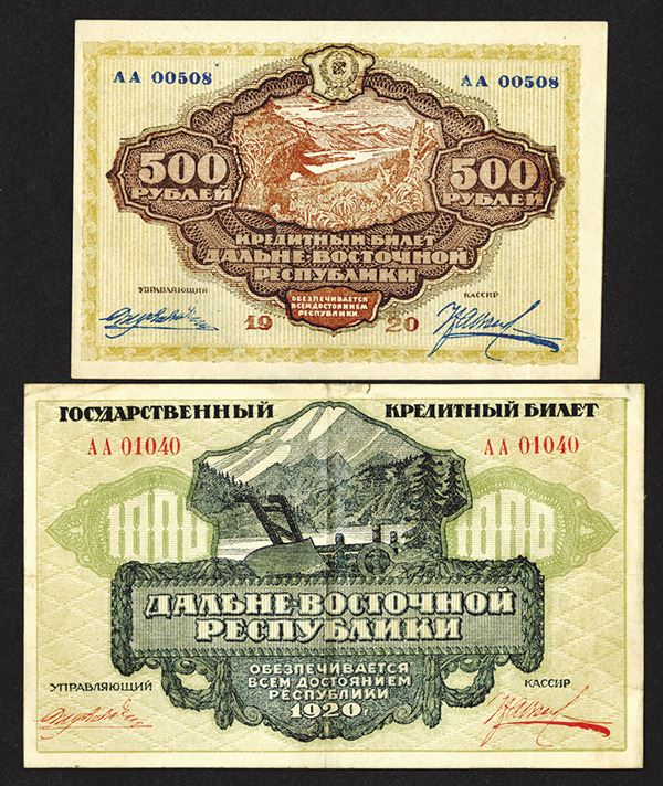 Russia - East Siberia. 500, 1000 Rubles. P-S1207, S1208. Wonderful landscape designs. First Choice About Uncirculated, second is Very Fine or better. 2 pieces. (The Silicon Valley Collection)