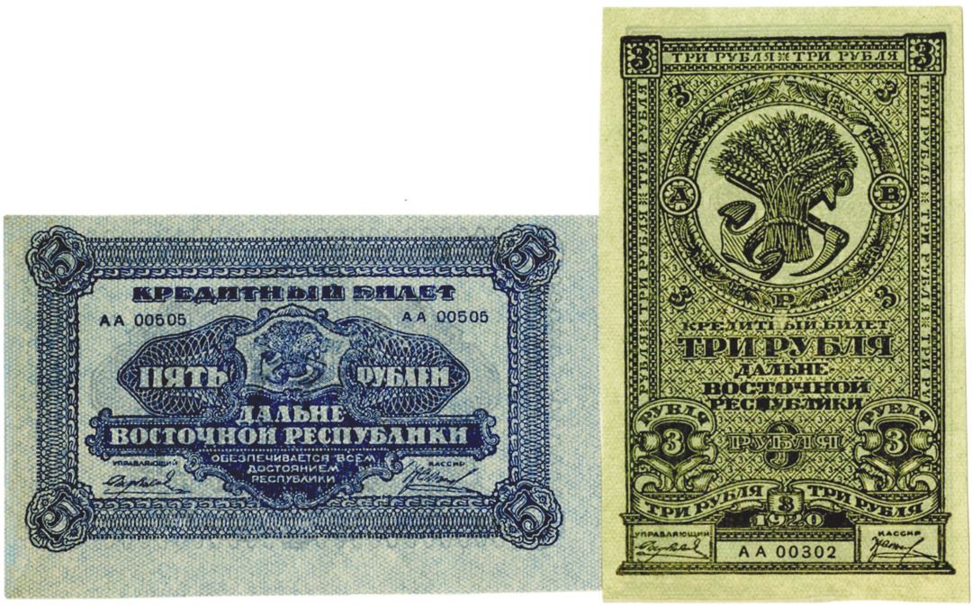 Russia. Pair of 3 Rubles & 5 Rubles credit notes. P-S1202; S1203. Uncirculated to CU condition. (2).