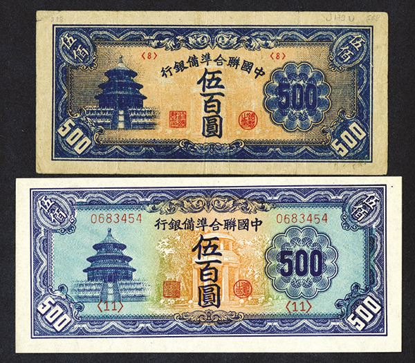 China. 500 Yuan. P-J89a, 90. Uncirculated and nice. Very Fine. 2 pieces