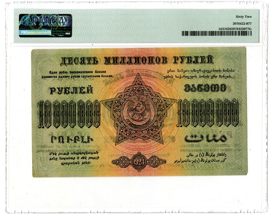 Russia, Transcaucasia, 1923. 10,000,000 Rubles, P-S631, Issued Banknote. Black on m/c underprint/ Block B-18111. PMG graded Uncirculated 62.