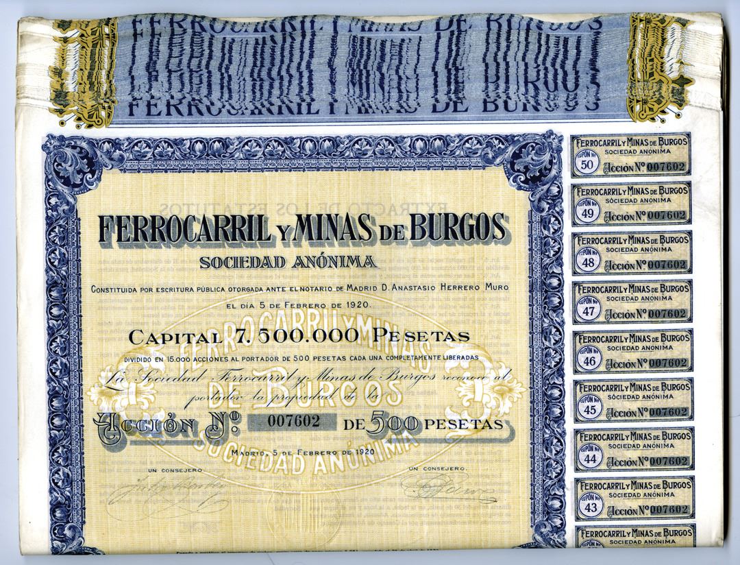 France. 1920, Lot of 50 Pieces. All are 500 Pesetas I/U Bonds, Blue print on large blue border with yellow under tint printed in French, Company title at top with coupons on bottom, VF-XF condition. (50)