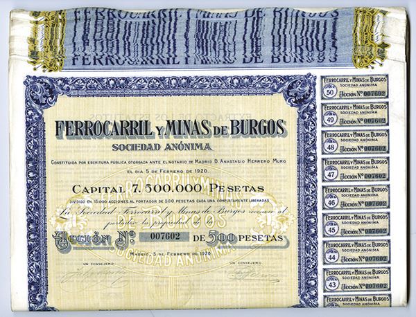 Ferrocarril y Minas de Burgos, 1920 Issued Bond Lot of 50 Pieces