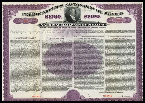 Mexico, 19xx (ca.1907), $1000, 4 1/2% 50 Year Sinking Fund Gold Specimen Bond, Portrait of man top center facing right, VF condition, ABNC.