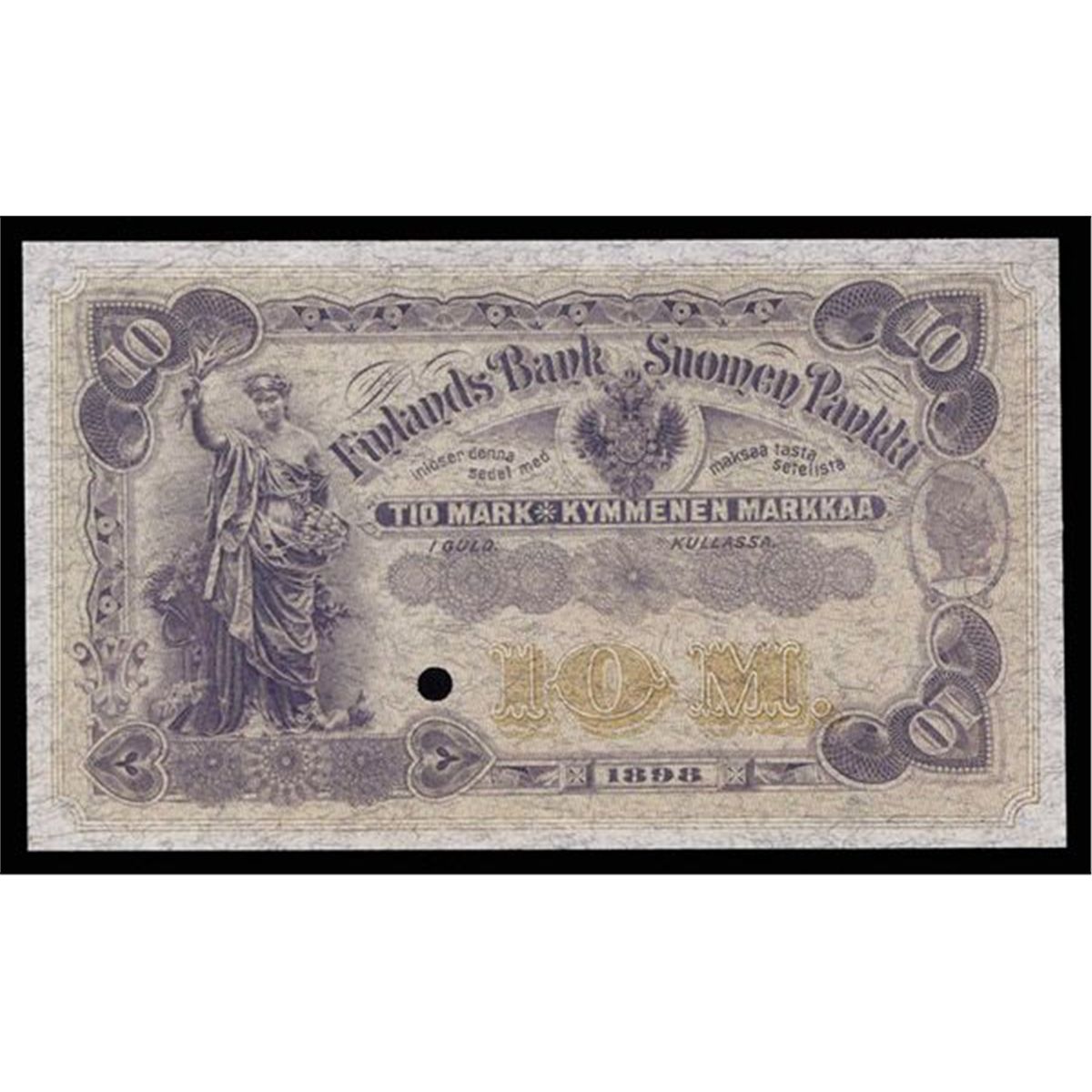 Finland, 1898, 10 Marka, P-3 Unlisted Uniface Front specimen, Light gray-purple on brown underprint on gray security threaded paper, no signatures or S/N's, POC, Choice AU Condition, rare note in this format.