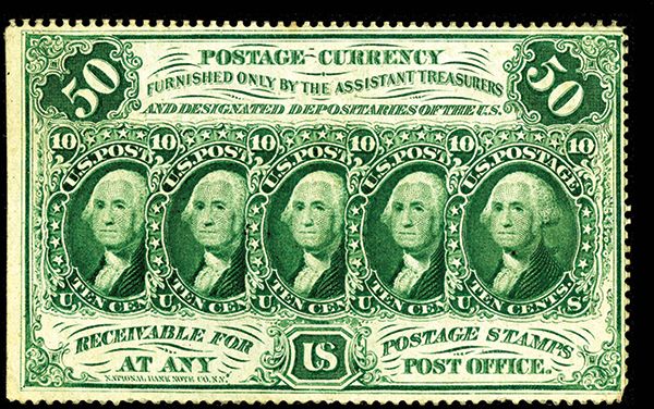 First Issue 50 Cent Fractional. Fr.1311. 50 Cent First Issue. Perforated edges, without monogram. PMG AU 53 NET. "Previously Mounted."