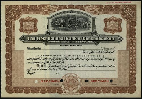 Pennsylvania, 19xx, Specimen Stock, 100 Shares, Black print on brown border and underprint, Iron Clad Borough top center, Red SPECIMEN overprints and POC's, VF-XF condition, SBNC.
