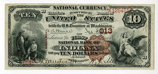 Indiana, Pennsylvania. $10, Issued banknote, S/N 6045-X125451, VF to Choice VF condition. Attractive and scarce.