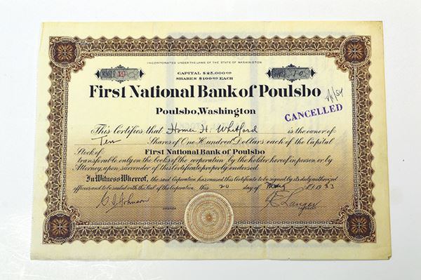 Washington. 10 Shrs Stock Certificate. I/C. Very Fine+.