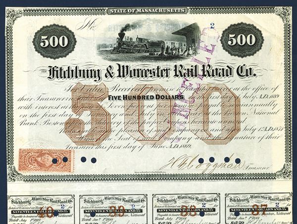 Massachusetts. $500 7% Issued and Canceled Bond in a Horizontal format with coupons attached. POC's, Fine condition with creasing, toning and some minor splitting, ABNC.