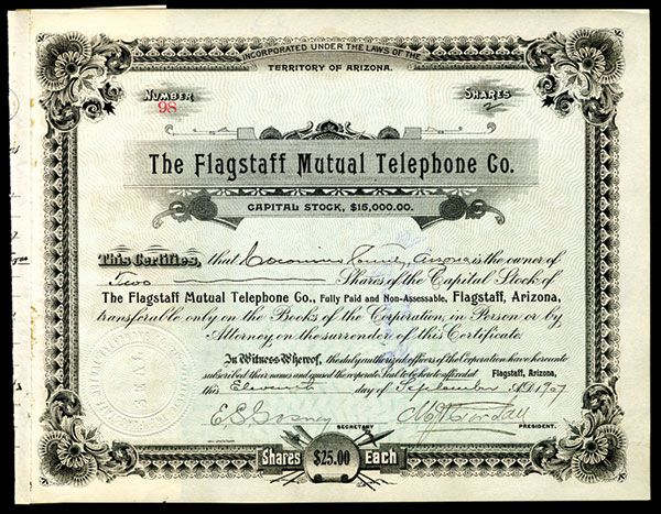 Arizona, 1907, 2 Shares, I/U Stock Certificate, Cert #98, Black print with black ornate border, No vignette, VF condition, Hall Litho Co.
