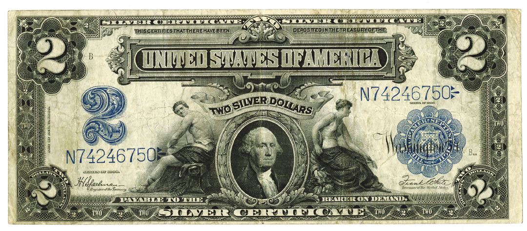 Washington, D.C. Fr. 258, Series of 1899, Silver Certificates, $2, Speelman | White signatures, VF to VF+ condition.