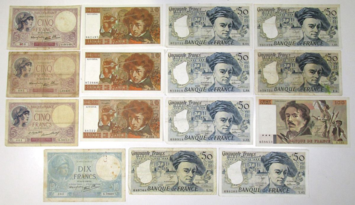 France, 1932 to 1989. Lot of 15 Issued Banknotes, Includes: 5 Francs, P-72 ; 5 Francs, P-83 (2); 10 Francs, P-84; 10 Francs, P-150 (3); 50 Francs, P-152 (6); 100 Francs, P-154. Notes range from Fine to XF condition. (15). Sold "AS IS" no returns accepted.
