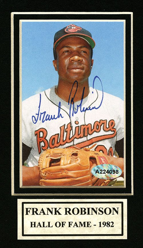 Autographed Frank Robinson photo matted with his name and 'Hall of Fame-1982', XF condition. Autographed Legends certificate of authenticity reg# A224098 is also included.