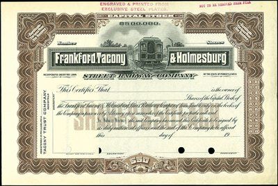 PA. 19-- (ca. 1900-1920). Specimen. < than 100 shs, Capital Stock, brown. Vignette of electric interurban passenger train. Attractive certificate. Unlisted color variety in Cox. SBNC. XF.