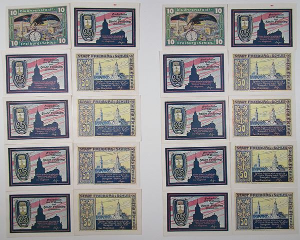 Germany. Lot includes an assortment of 20 notes including 10, 25, and 50 Pfennigs (10 different designs, 2 of each). Unc. to Choice Unc. (20)