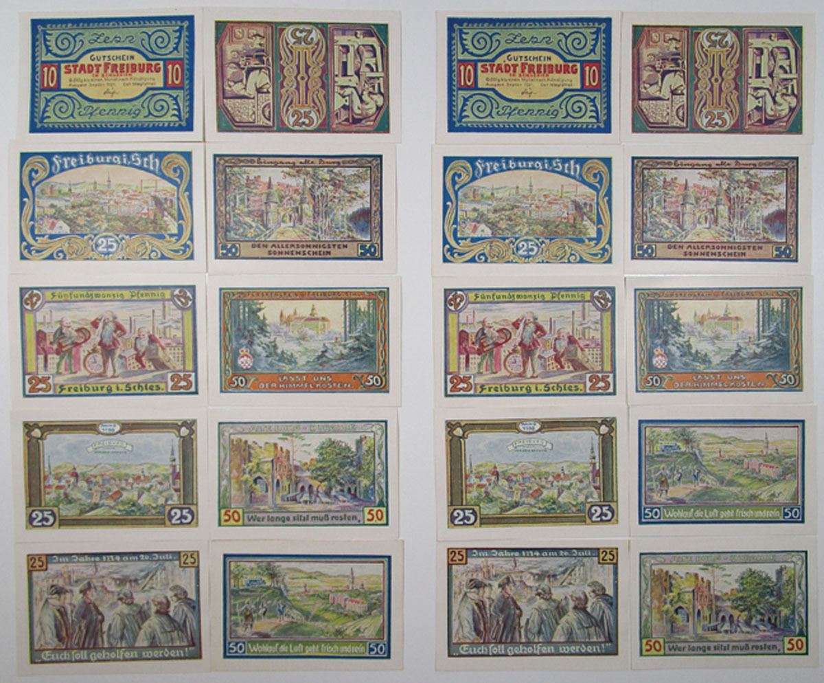 Germany. Lot includes a Notgeld assortment of 20 notes including 10, 25, and 50 Pfennigs (10 different designs, 2 of each). Unc. to Choice Unc. (20)
