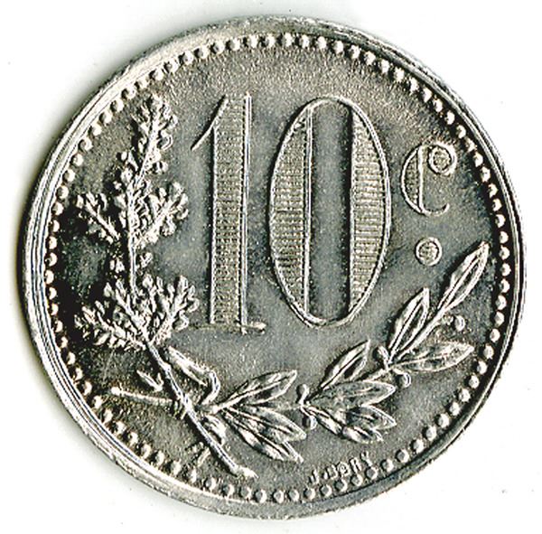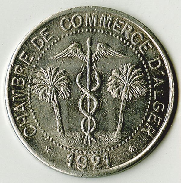 AlgeriaÉ.. 1921, 10 Centimes, Aluminum, Caduceus flanked by Palm Trees, Back with numeral 10, With J. Bory on Reverse, Uncirculated to CU condition.