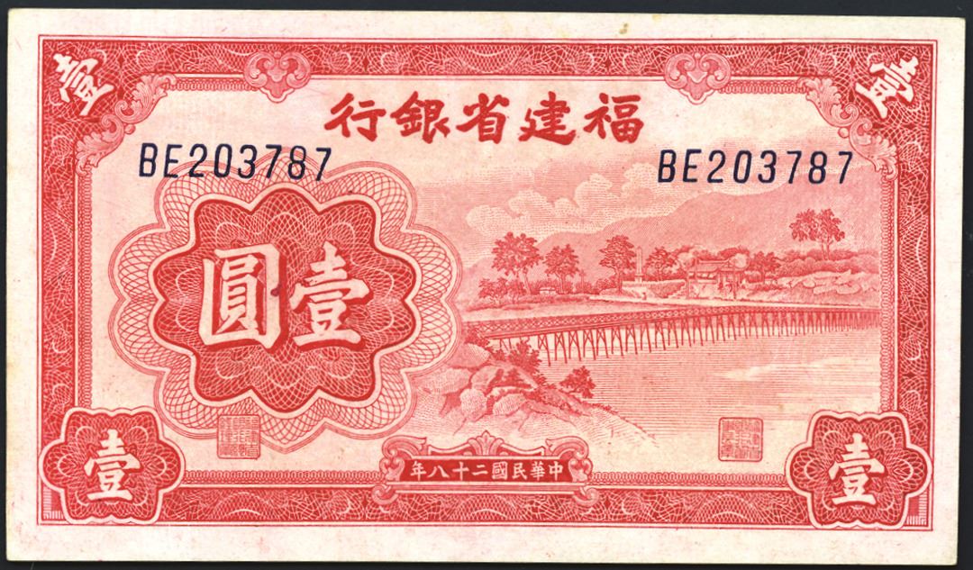 China. 1 Yuan, P-S1420 (S/M#F27-50), Issued banknote, red face, brown back, PMG graded Choice About Uncirculated 58, attractive note. (From the Allen Berk Collection)