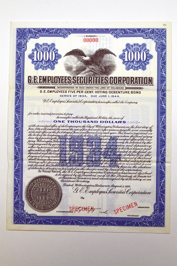 Delaware. $1000 Voting Debenture Bond. ABNC Litho. Extremely Fine.