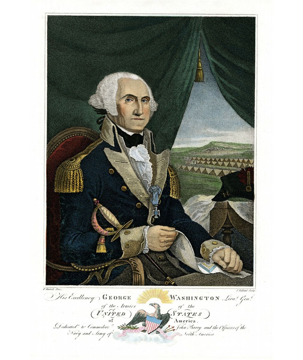 Printed on thin card stock, F. Bartoli - Pinx and J. Galland Sculp., Dedicated to Commodore John Barry, and the Officers of the Navy and Army of North America.