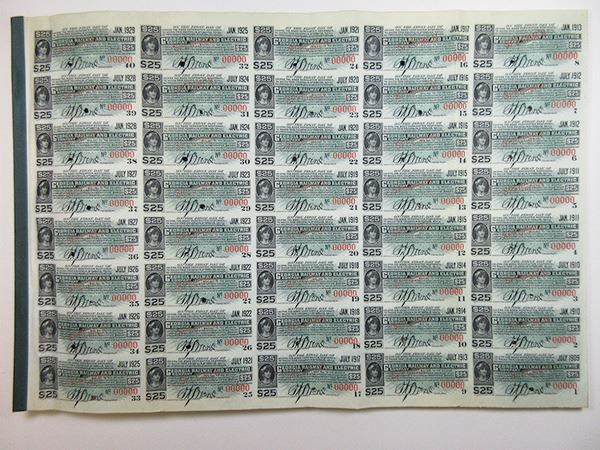 Georgia. $1,000 Specimen 5% Refunding and Improvement Mortgage Sinking Fund Gold Coupon Bond, Black print on green border and under tint, Allegorical women sitting besides generator sandwiched between company title, Specimen overprints and POC's, VF-XF condition, ABNC. Only known as a specimen in Cox.