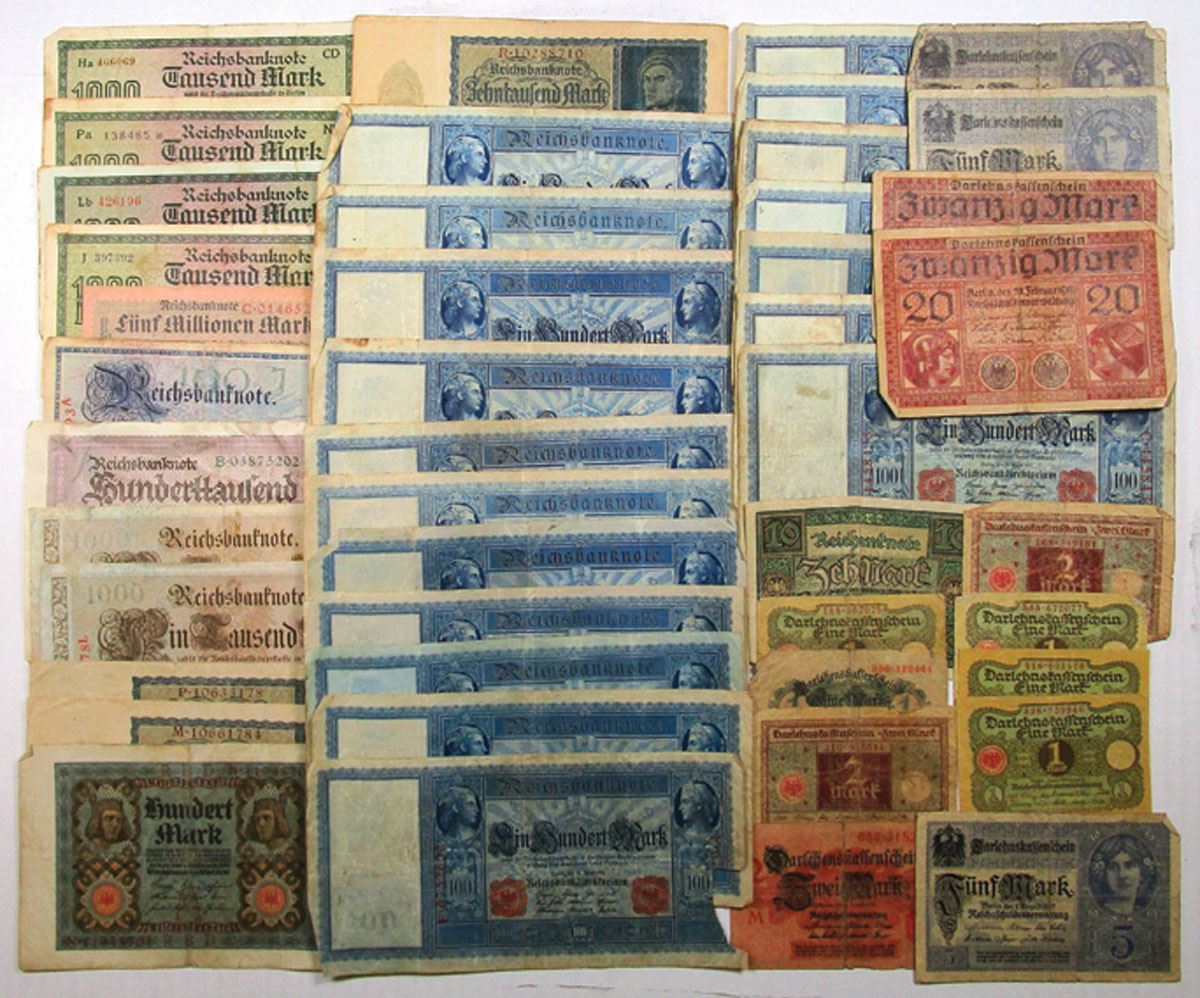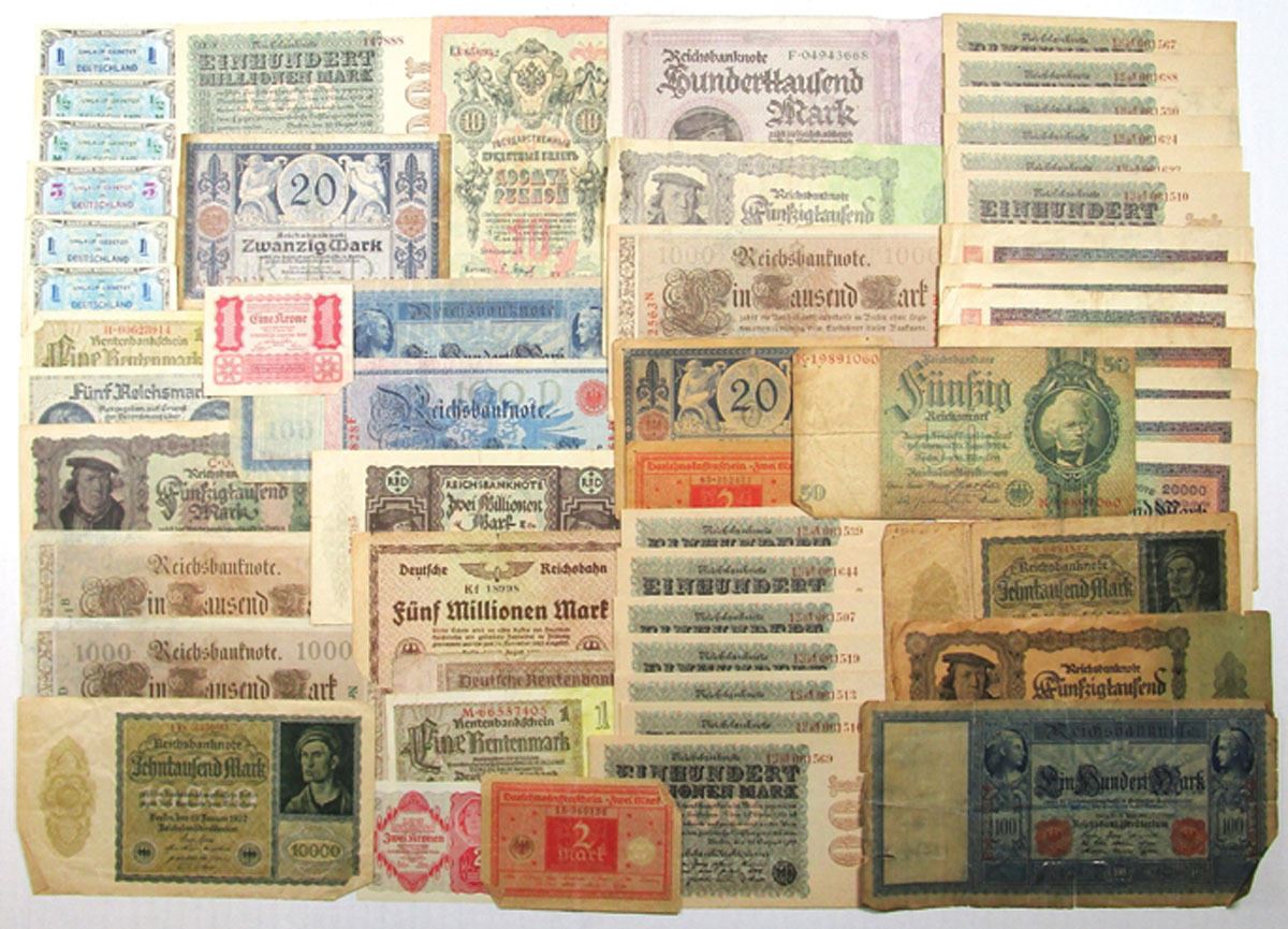 Germany, 1910-50s. Lot of 100 Issued Banknotes from Various German Banks, Lot includes some Notgeld, Allied Currency, includes a couple of Russian Banknotes, Notes range from Good to VF+ condition. (100). Sold "AS IS" no returns accepted.