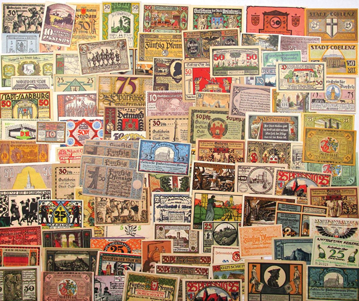 Germany, 1920 to 1923.... Lot of 100 German Notgeld from Various cities, Notes range from XF to CU condition. (100). Sold "AS IS" no returns accepted.