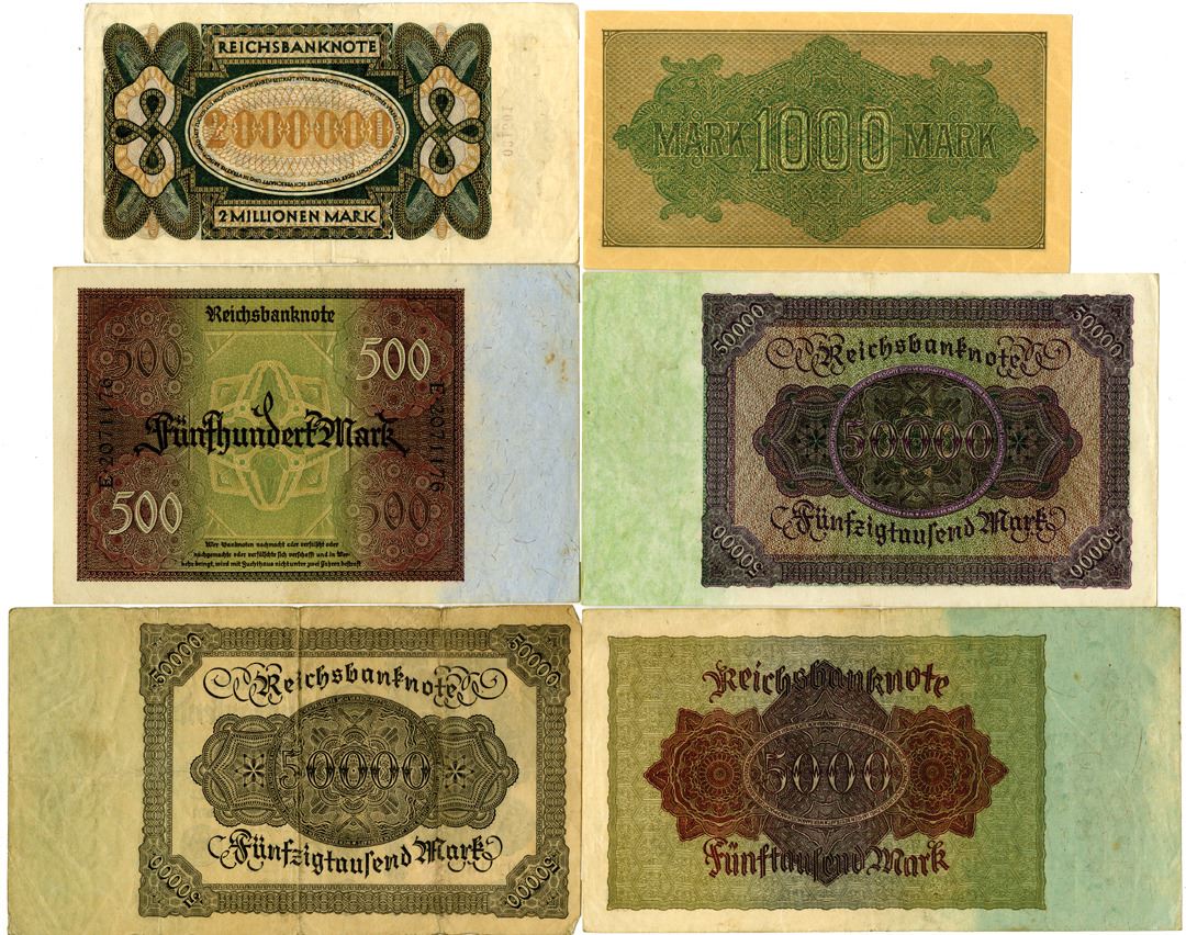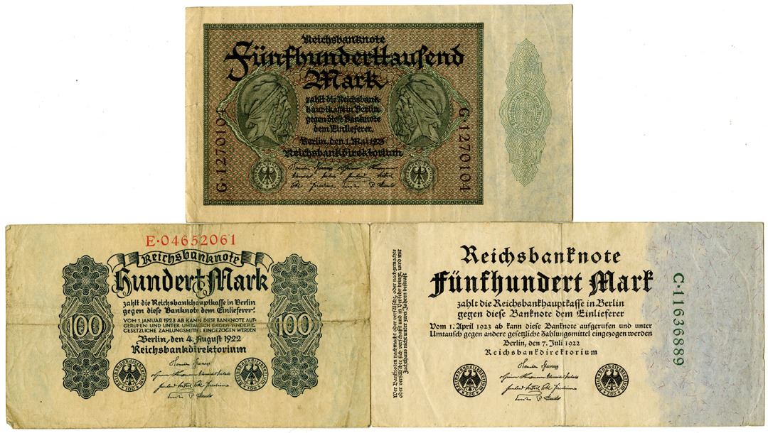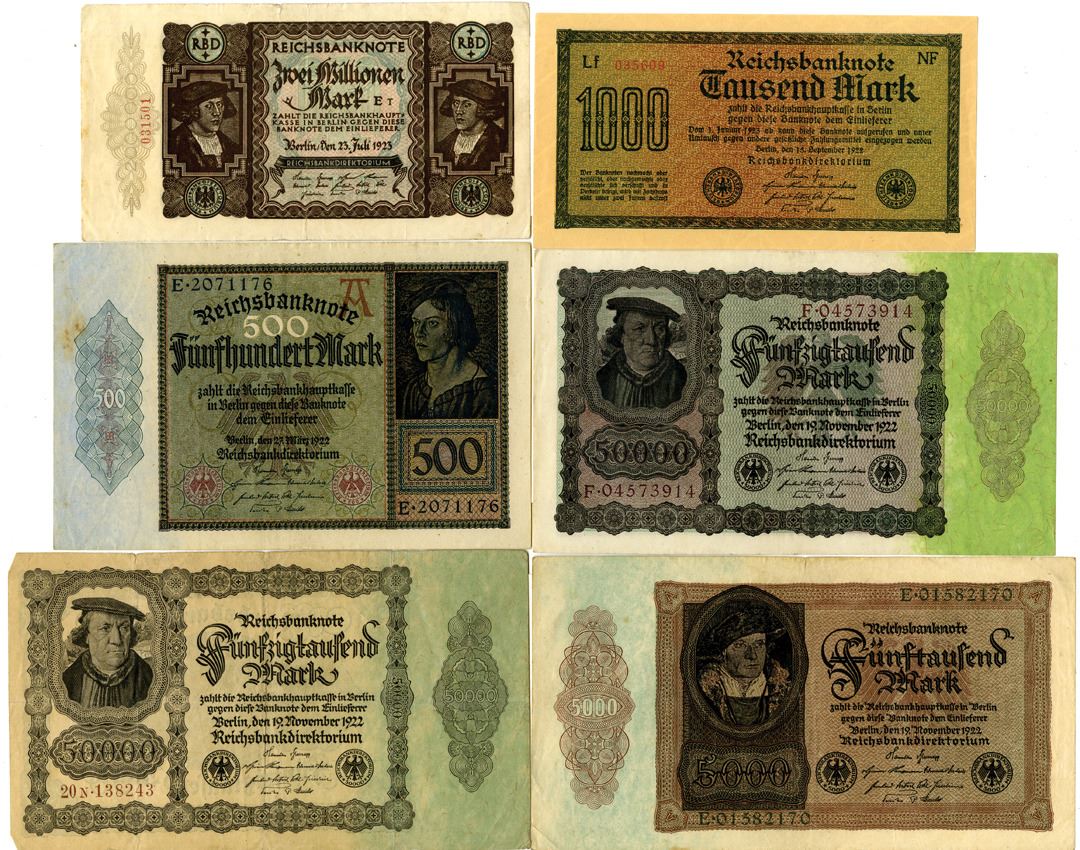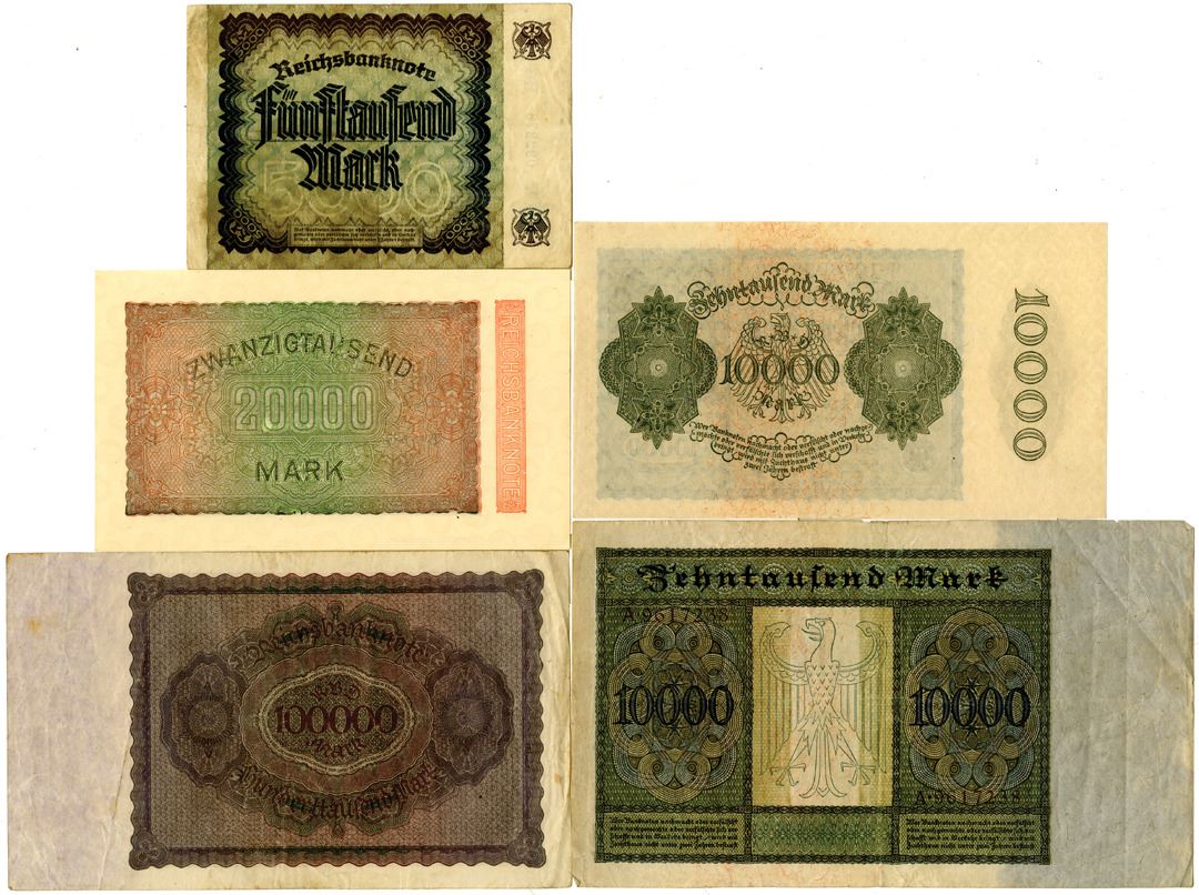 Germany….., Collection of notes highlights include Weimar Republic 500 Mark, 1922, P-73; 10,000 Mark, 1922, P-70; 10,000 Mark, 1922, P-72 and more. Condition ranged from VF-XF. Sold as is, no returns accepted. (14).