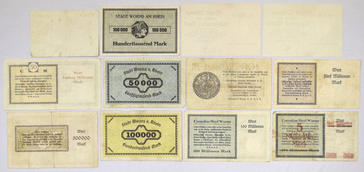 Germany, 1923. Group of 12 Issued Notgeld Banknotes from Worms, all are large denominations. Fine to VF condition. Sold "As Is" No Returns accepted. (12)