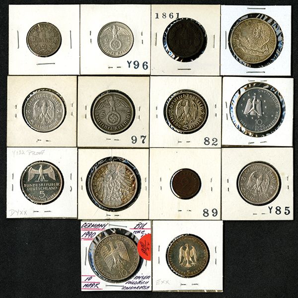 Germany, Mostly. 1861-2004. Bavaria 1909 3 Marks VF; 5 Marks 1930’s(4) VF or so; Proof 5 and 10 Marks and 10 Euros 1971-1990, and more. Should be seen. Sold as is. [14]