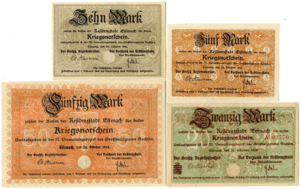 Germany, Eisenach. Lot 4, includes 5, 10, 20, and 50 Mark. All Choice Unc.