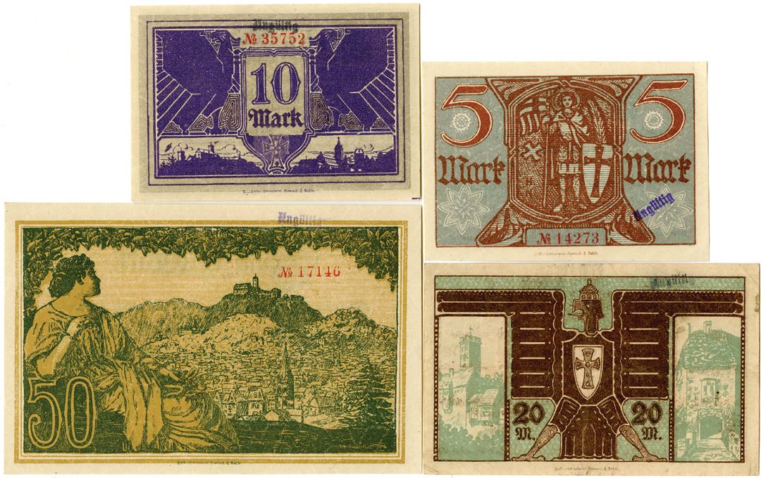 Germany, Eisenach. Lot 4, includes 5, 10, 20, and 50 Mark. All Unc. to Choice Unc.
