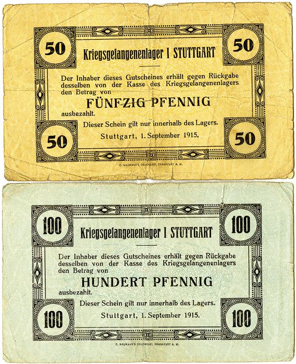 Germany. Stuttgart. Lot includes 50 and 100 Pfennig, 1915, Uniface, both Fine to Choice Fine.