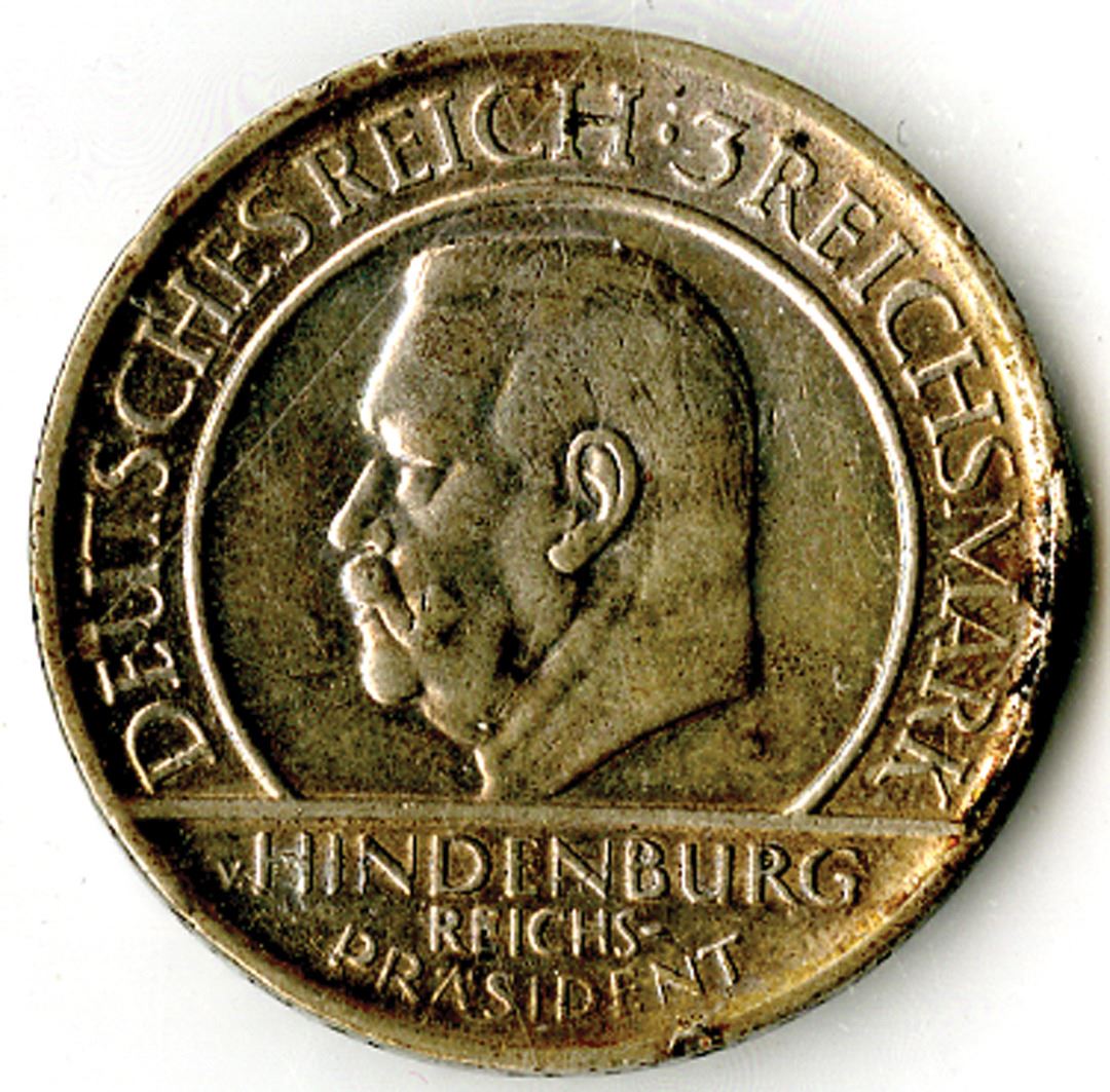 Germany, Weimar Republic 1929, 3 Reichsmark, KM#63, 0500 Silver, 0.399 ounces, 29 mm, Hindenburg on face, total weight .399 ounces silver, ASW. Choice XF to AU condition.