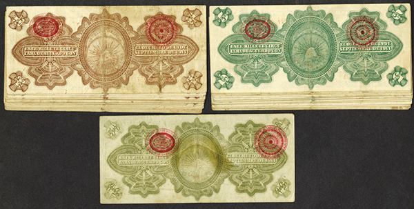 Mexico. 50 Centavos, 1, 5, Pesos. P-S701 (11); S702b (10); S707e cut cancelled. Eagle on cactus. Mostly Fine. 23 pieces