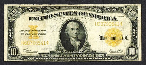 United States. 10 Dollars. Fr. 1173. Michael Hillegas at center. Speelman-White signature. Very Good and a bit dirty form use. Cut tight at bottom. Pencil grafitti near portrait.