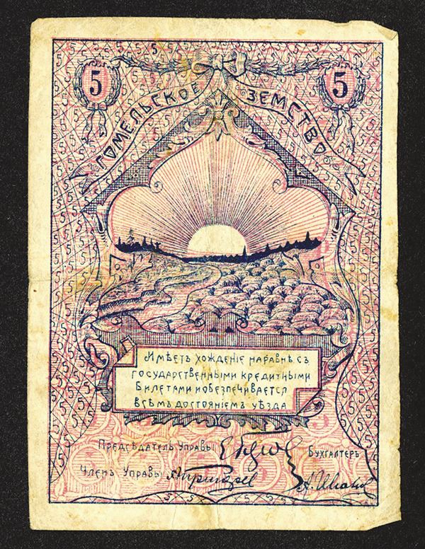Russia / Belarus, issued 5 Rubles, local issue of Gomel Zemstvo, uncommon type, choice Fine.