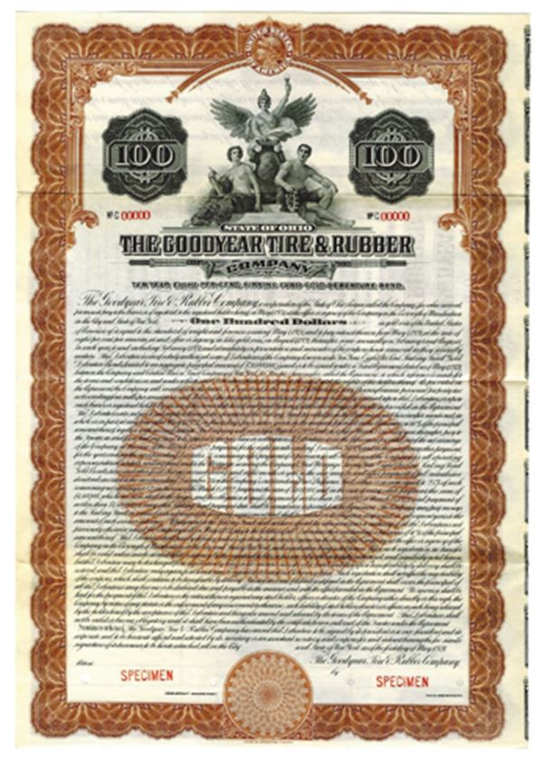 Ohio. $100 Specimen 8% Sinking Fund Gold Debenture Coupon Bond, Black print on brown border and under tint, Allegorical figures together at top, Specimen overprints and POC's, Fine-VF condition, ABNC.