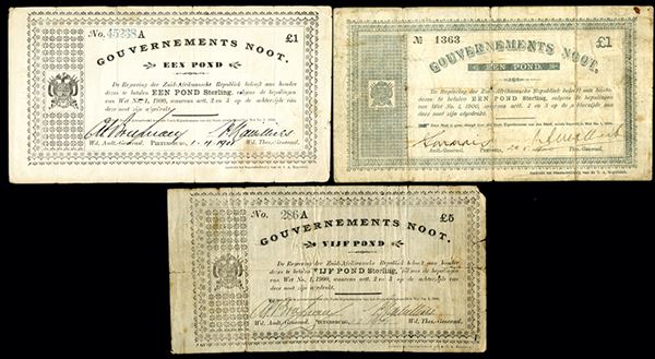 South Africa. Lot of 3 notes, Includes 1900 issue, £1, VG to Fine with small edge faults; 1901 issues, £1, VF and £50,VG+ with a 1 inch tear on right border. Attractive group of notes. P-54b; P-60c and P-64.