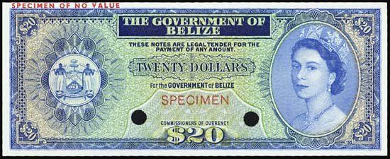 Specimen banknote. ND. P-37 Unlisted Trial Color. $20. Blue and m/c (issued note was brown on m/c). Red specimen overprint and POC's. Choice uncirculated. Scarce banknote.