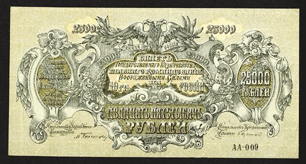 Russia - South Russia. Treasury Notes. 25,000 Rubles. P-S427. 1920. Unfinished back printing. About uncirculated. (The Silicon Valley Collection)