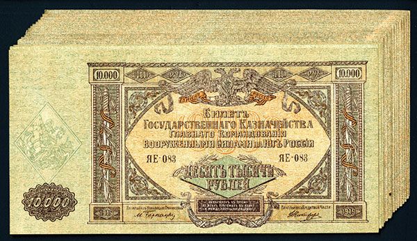 Russia (South Russia), dealer lot of 18 issued notes, 10000 Rubles, P-S425, all UNC and scarce.
