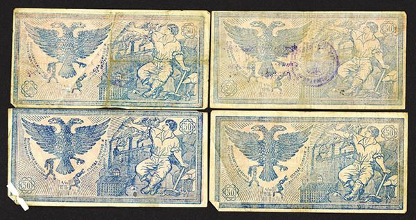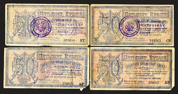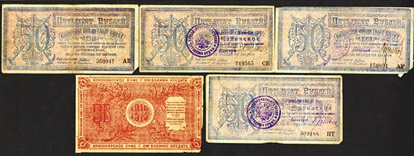 Russia, Lot of 5 Notes, Includes 5 Rubles, P-S961a (1) and P-S961b (3), All in VG to Choice VF to XF, Attractive series and 1919, 10 Rubles, P-S969, Choice VF to XF. Scarce note. (The Pogrebetsky Family Archives)
