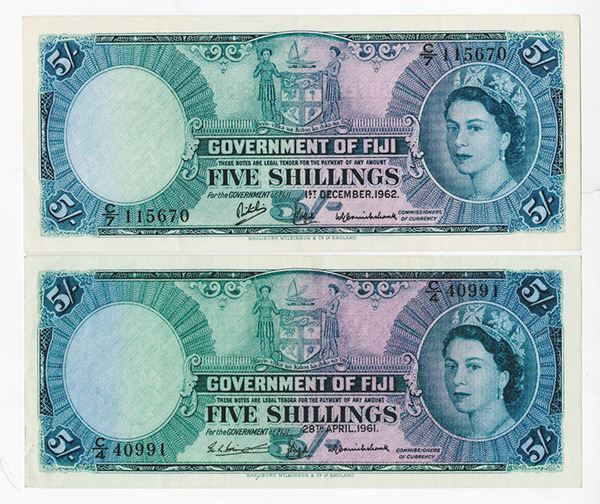 Bahamas. Lot includes 5 Shillings, 1961, P-51b, Extremely Fine; and 5 Shillings; 1962, P-51c, Choice Very Fine. Both BWC.