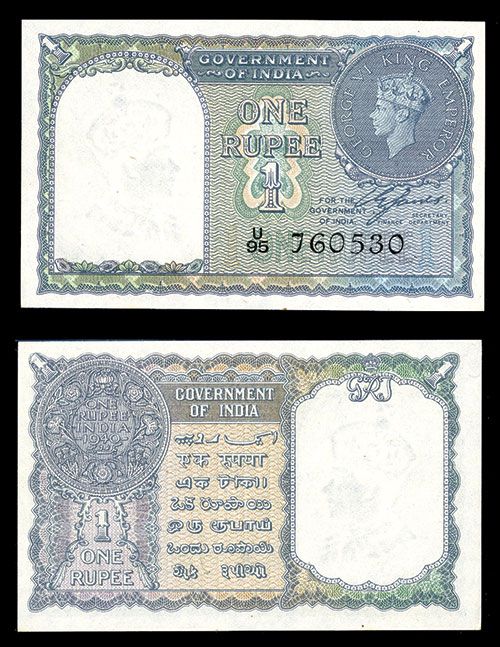 India, ND (1940), 1 Rupee, P-25a, Jhun1.1A, Issued banknote, PMG graded Choice Uncirculated 64 EPQ, Attractive note for the series.